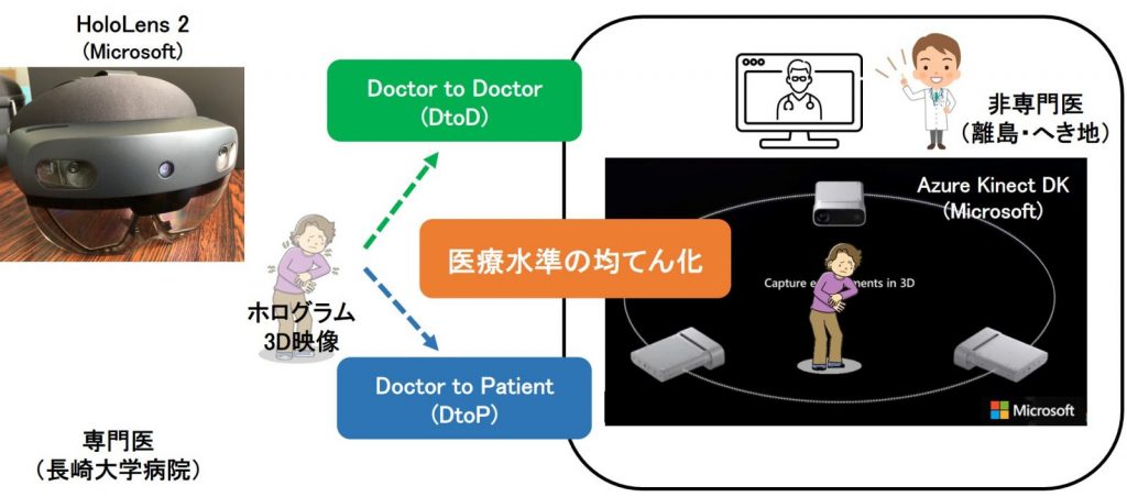 長崎大學類風濕性關節炎遠程醫療系統(NURAS)已被開發為日本第一個利用混合現實(Mixed Reality)為類風濕性關節炎患者提供的下一代在線遠程醫療系統。
