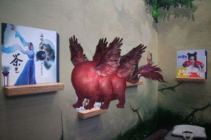 當用戶走進這座MR數字圖書館,映入眼簾的是四面墻畫,上面噴涂了各種書籍,佩戴上HoloLens(Microsoft HoloLens 是微軟首個不受線纜限制的全息計算機設備,能讓用戶與數字內容交互,并與周圍真實環境中的全息影像互動)后,神奇體驗便隨之展開了,凝視墻上的圖案便可以打開對應的書籍,會有京劇形象站在你面前表演、鳳凰和貔貅在眼前大秀身姿,還有漢風童子面對面教你坐容與立容,更有生動的卡通京劇人物上演一堂趣味十足的戲曲,這里展示的“圖書”類型多樣,包含神獸影像、流行音樂及古典音樂視頻、動漫互動、圖文游戲等等…..自此,圖書不再受限于“紙上談兵”,不再只是用文字或是平面的圖案傳道授業,這就是一座活起來的圖書館。